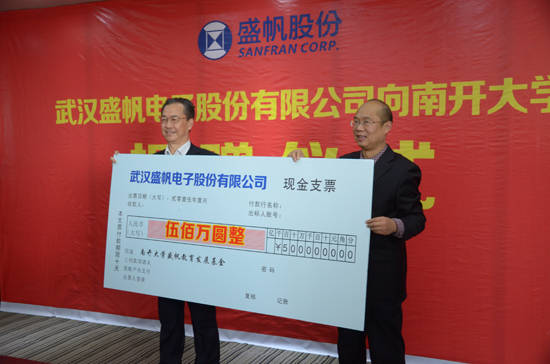1月24日,武漢盛帆電子股份有限公司向南開(kāi)大學(xué)捐贈(zèng)人民幣500萬(wàn)元,設(shè)立“南開(kāi)大學(xué)盛帆教育發(fā)展基金”作為學(xué)校的教育發(fā)展···