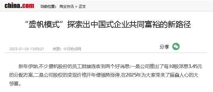 新年伊始,不少盛帆股份的員工就接連收到兩個(gè)好消息:一是公司推出了每10股派息3.45元的分配方案,二是公司股權(quán)的變現(xiàn)價(jià)···